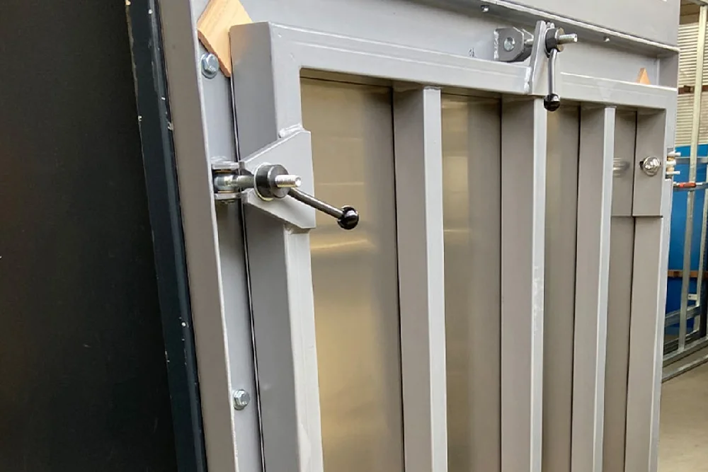 - Schnellverschluss-System: Kurbelgriffe für leichte Bedienung